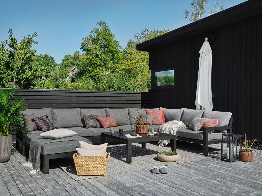 Stettler Hörndel Svart Byggbar trädgårdssoffa