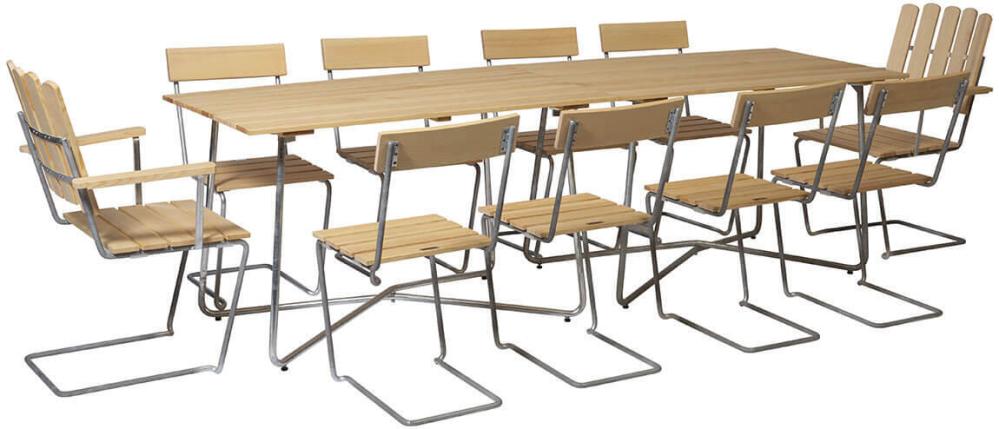 Grythyttans Stol 1 ritades av Artur Lindqvist 1931 och är “lillebror” till fåtölj A2. Lite nättare, lite smidigare men fortfarande med Grythyttans berömda gung. Stolen är både bekväm och vacker att skåda, med sina rena linjer och sin enkelhet har den en design som gör den stapelbar, perfekta lösningen för den mindre uteplatsen eller caféet. Stolen tillhör Klassikerserien som innehåller fler sittmöbler, matchande bord och komplement till trädgården. För smidigare hantering på hårda underlag rekommenderar vi golvskydd som tillbehör.