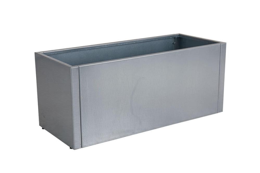 Timjan kruka finns i fyra olika storlekar. Samtliga är gjorda i 2 mm plåt, är enkla att montera och har både dräneringshål i botten och ställbara fötter. Kan kompletteras med hjul för enklare förflyttning. Den här modellen är 120x50 cm.