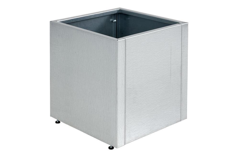 Timjan kruka finns i fyra olika storlekar. Samtliga är gjorda i 2 mm plåt, är enkla att montera och har både dräneringshål i botten och ställbara fötter. Kan kompletteras med hjul för enklare förflyttning. Den här modellen är 50x50 cm.