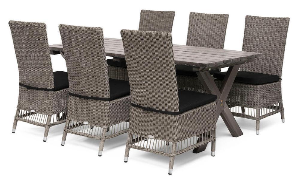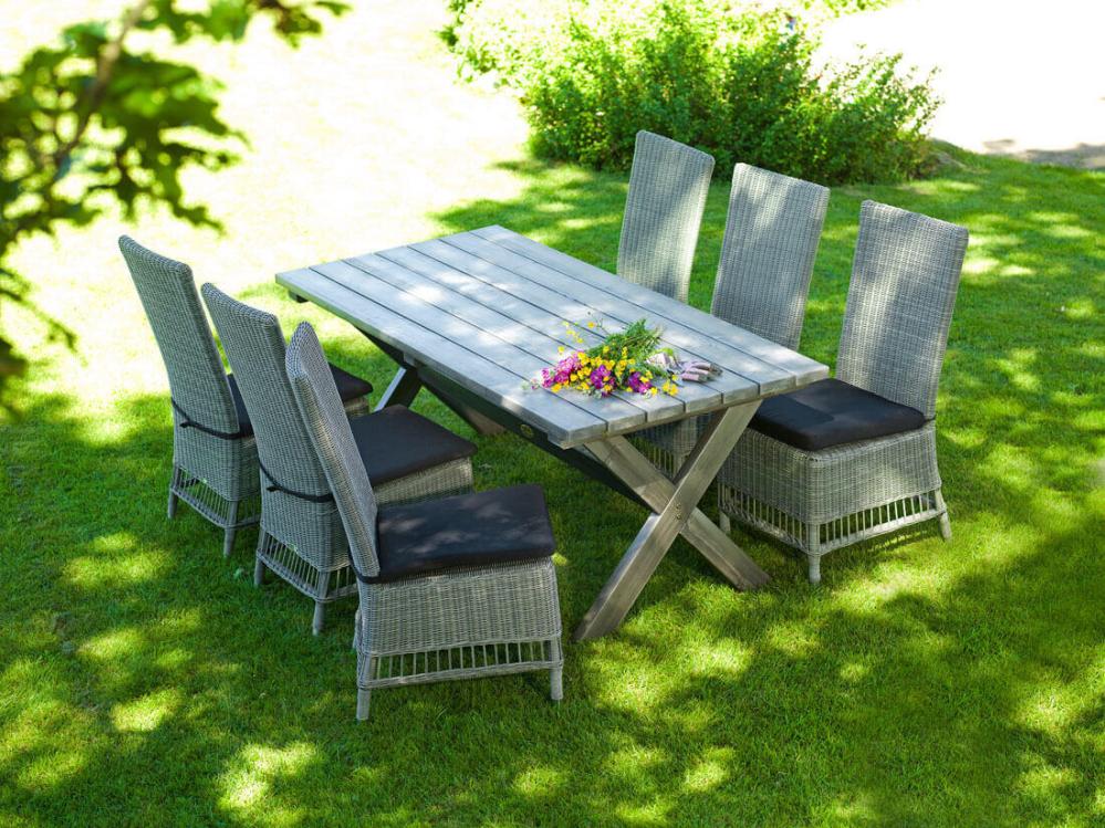 Trenton har fått sin inspiration av inredningsstilen Shabby Chic som i sin tur hämtar inspiration från den engelska landsbygden, som kännetecknas av möbler med ljuvlig patina i vita eller ljusa färger. Denna fåtölj är tillverkad av grå Quato™ konstrotting, tillsammans med en svart dyna som ingår i priset!