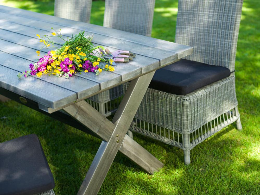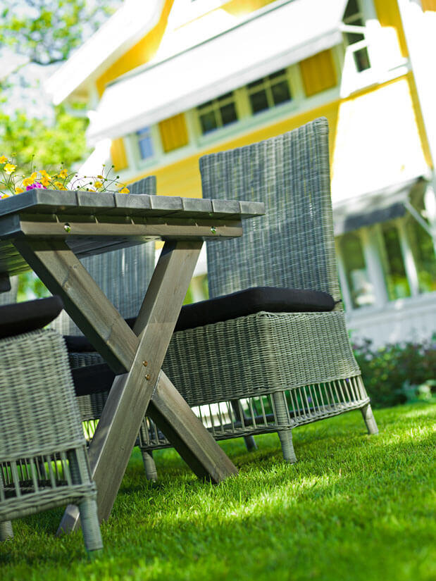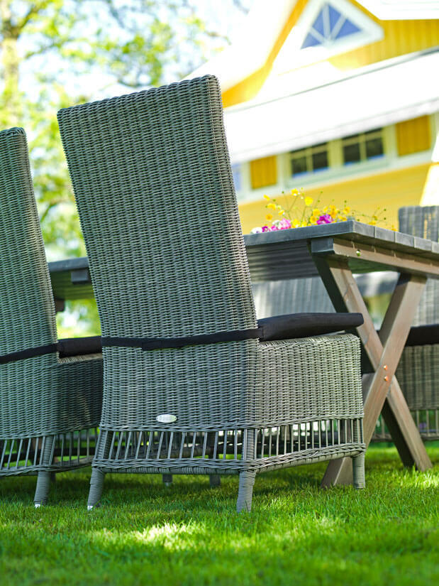 Quató™ uppvisar hög beständighet mot kyla, värme och UV-strålning. Den har dessutom optimerats för god sittkomfort. Möblerna bör förstås hållas rena, men behöver i övrigt inget särskilt underhåll.