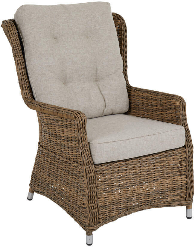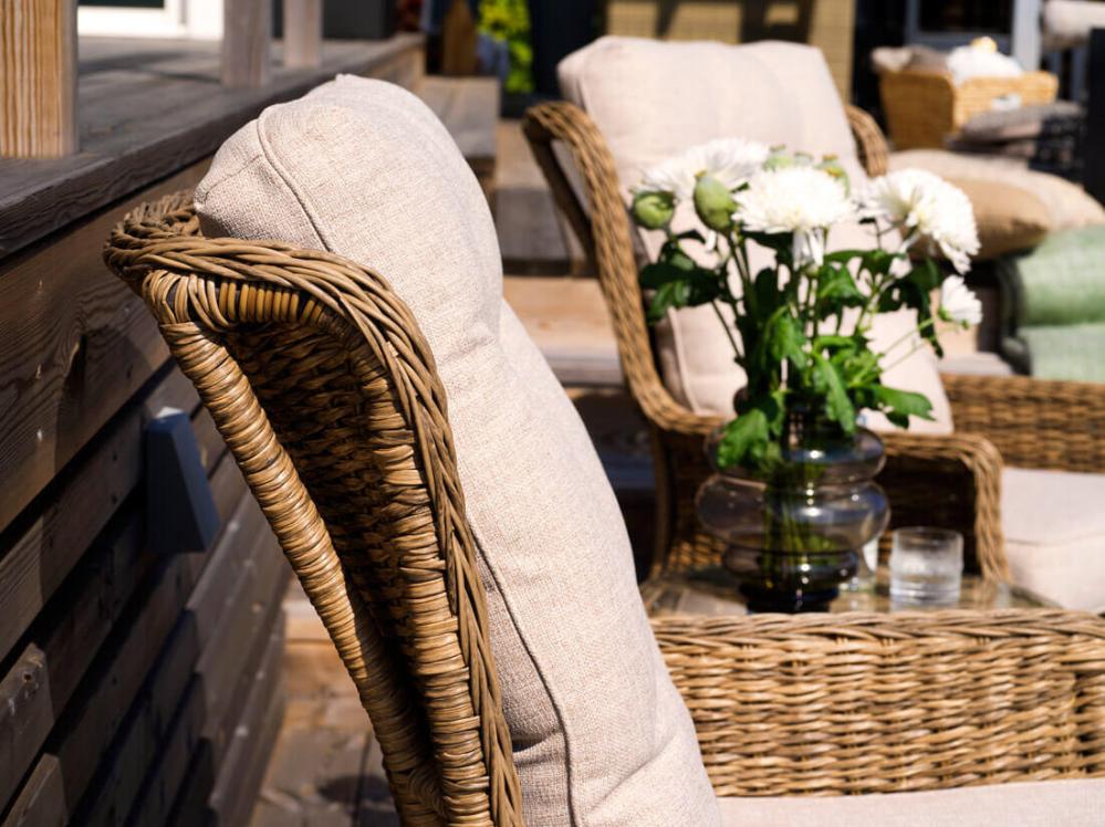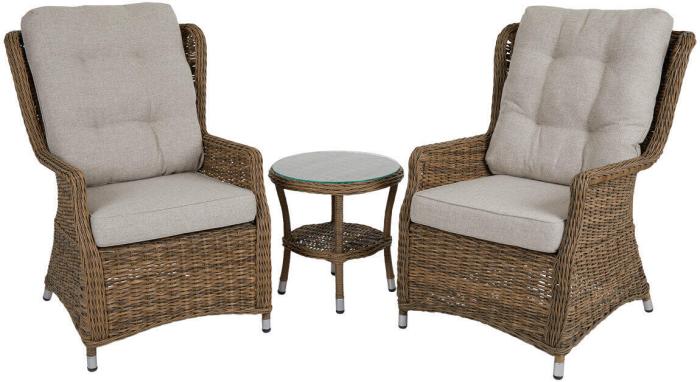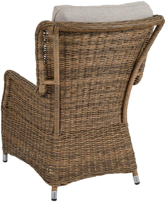 Vallmo är en serie utemöbler från Brafab i klassisk stil med skön komfort och ren elegans. Stomme av aluminium klädd med rustikfärgad (natur) tvinnad konstrotting. Sidobordet har en skiva av härdat glas medan sittmöblerna har tjocka och bekväma dynor i sandfärgat olefintyg - ett tyg som är praktiskt, hållbart och stilrent. Möblernas genomtänkta formgivning och höga rygg ger utmärkt sittkomfort för hela kroppen. Dynorna förvaras med fördel i en dynbox eller dylikt medan konstrottingen är helt underhållsfri.