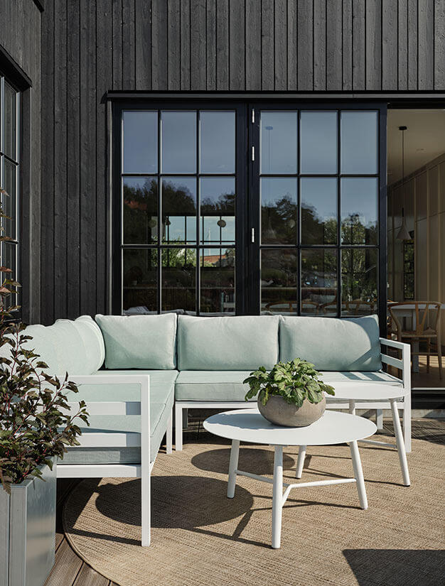 Uteborden Vannes med sin eleganta design och smakfulla färger passar i alla trädgårdar och uteplatser. Den här modellen är 45 cm rund, de två andra storlekarna i produktserien hittas en bit ner på sidan under Liknande produkter.