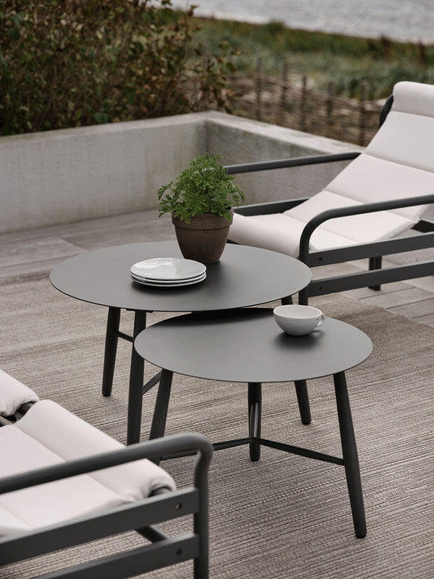Vannes är en kollektion lättplacerade och stabila bord från Brafab. De runda soffborden/sidoborden i pulverlackad aluminium finns i tre storlekar och höjder som kan kombineras tillsammans till satsbord eller som solitärer på balkongen eller uteplatsen. Borden har en feminin form med en modern tolkning på traditionell design och hög funktionalitet. Formgivningen av de runda bordsbenen och dess kryss ger en bekväm plats för att vila fötterna på.