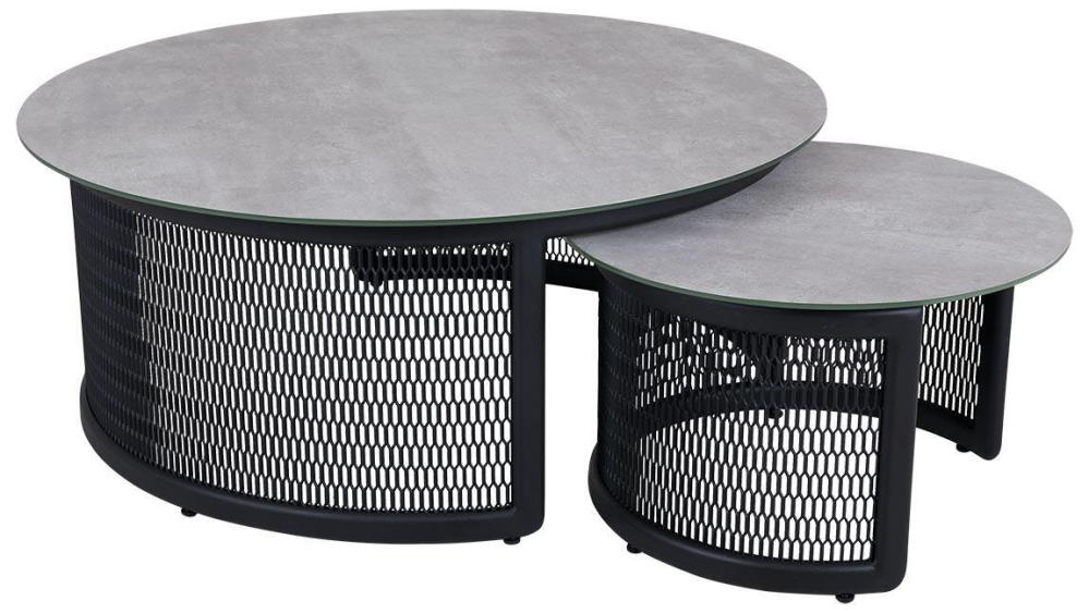 Med den snygga mönstrade stomlösningen blir Virgo soffbord ett stiligt inslag på uteplatsen. Välj den storlek som passar bäst – eller välj båda för en utmärkt kombination i form av satsbord.