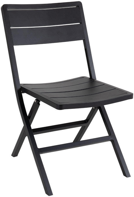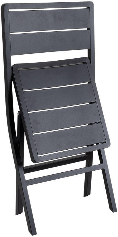 Fällbart caféset bestående av det kvadratiska 72x72 cm cafébordet Wilkie och två stycken fällstolar från samma produktserie. Bordet finns i svart eller vit medan stolarna kan väljas i flera färger.