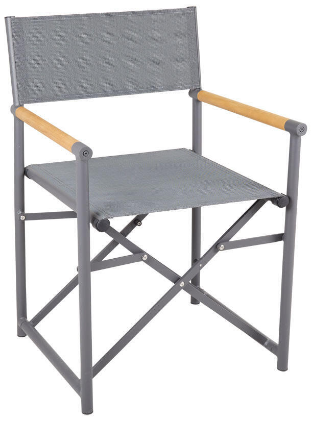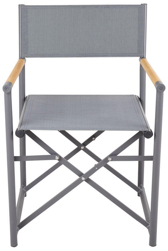 Zand karmstol är en uppdaterad variant av den klassiska regissörsstolen. En stomme i antracitfärgad aluminium tillsammans med slitstark textilene gör den lätt att fälla ut och ställa varhelst andan faller på. Armstöden i teak är en formmässig finess som gör att den tidlösa stolsmodellen känns ständigt aktuell och modern.