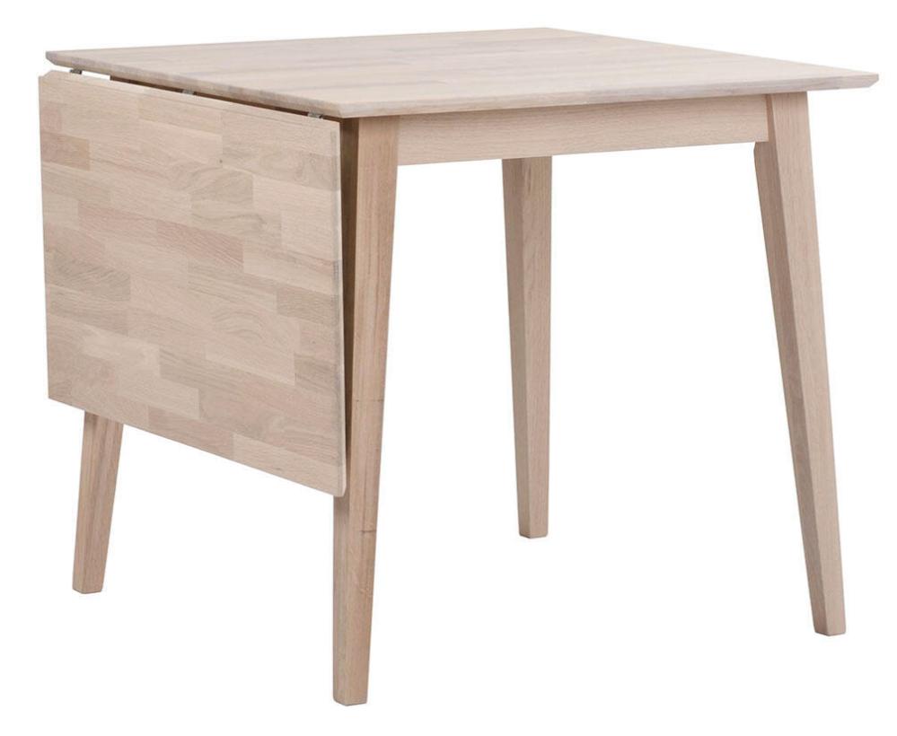 Filippa klaffbord 80-125x80 cm i stilren och enkel design. Matbordet är i oljad och vitpigmenterad ek med fällbar klaff som ger plats för fler. Maxlängd med utfälld klaff 125 cm. Klaffbordet ingår i serien Filippa som även innehåller ett större 120-165x80 cm klaffbord, samt mycket mer.