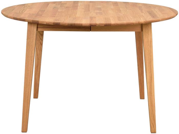 Filippa runt matbord 120-165x120 cm i avskalad och stilren design. Praktiskt matbord i smidigt runt format med en diameter på 120 cm. Det går att förlänga till 165 cm tack vare en medföljande iläggsskiva, och det går även att köpa till ytterligare ett 45 cm ilägg. Bordets maxlängd blir då 210 cm.