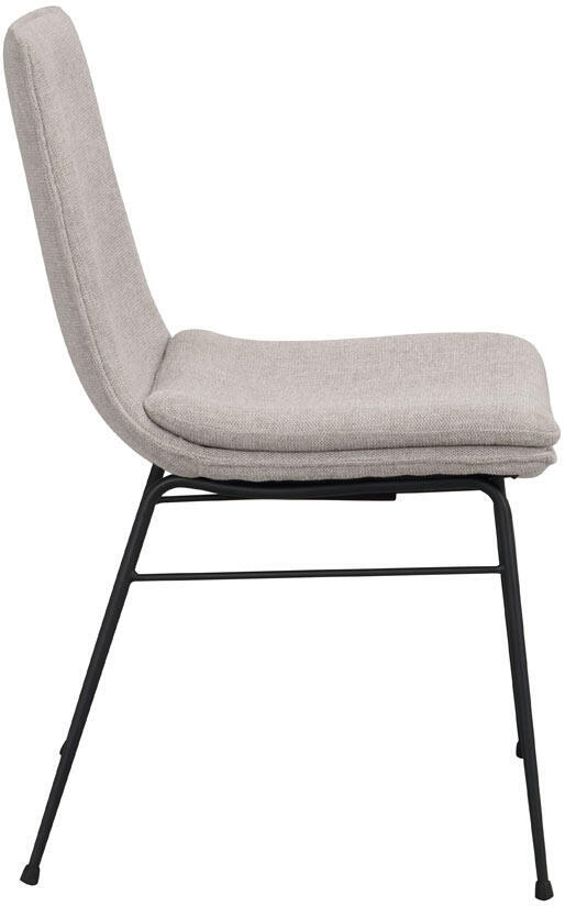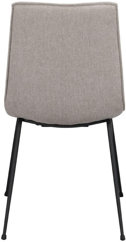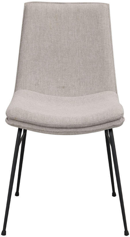 Stoppad stol med tygklädsel på plywoodstomme, ben i pulverlackad metall i sandstruktur. Fot i gummi