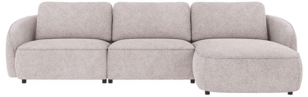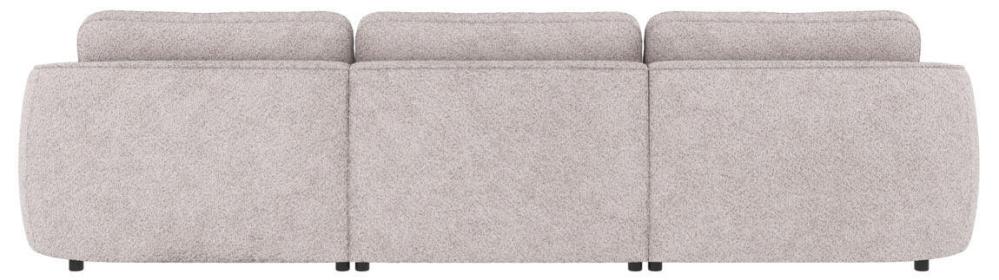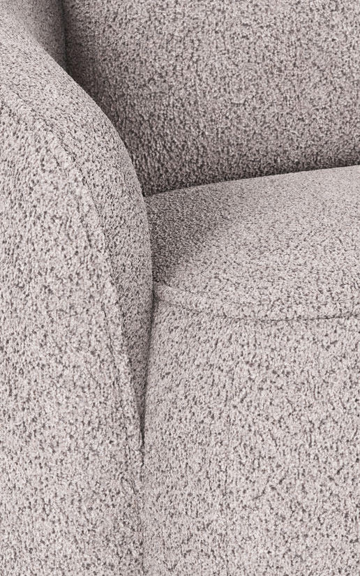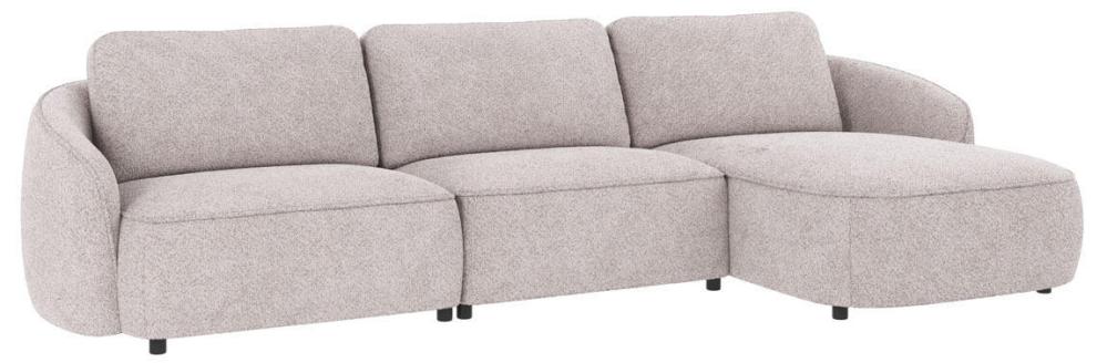 Norris 4-sitssoffa med divan höger, här klädd i tyget Anna ljusgrå (#15) i en jordnära ton, är en soffa med runda, organiska former som skapar en harmonisk känsla i hemmet. Ryggkuddarna är lösa och skapar extra komfort, de går att placera tätt ihop eller med ett litet mellanrum. Sittdynan är fast och innehåller nozag-fjädrar för att skapa en skön sittyta.