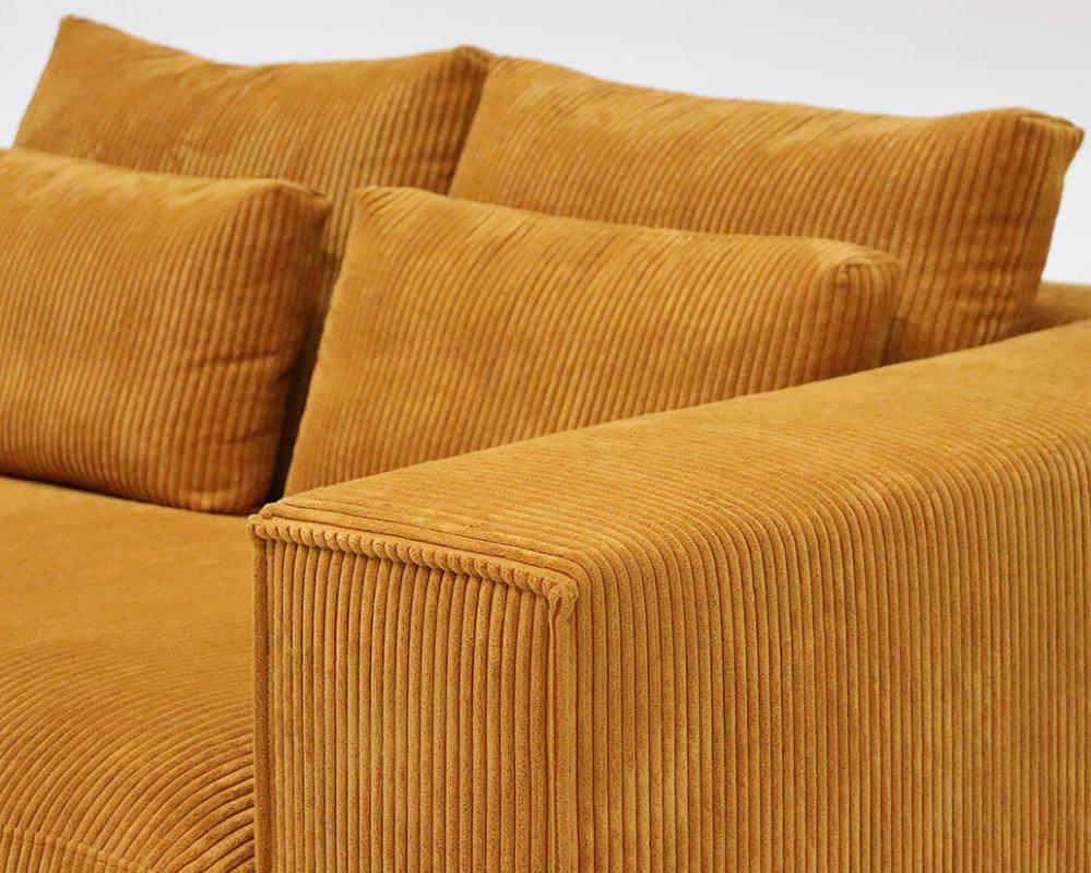 Vieste finns i en mängd olika tyger och färger, vilket ger dig friheten att skapa precis den stilen du önskar. På produktbilderna visas soffan i det stiliga manchestertyget Soop, i en uppseendeväckande färg Yellow. Det är en färg som verkligen lyfter rummet och ger en varm och inbjudande känsla. Därefter visas även de eleganta färgerna Hunter och Ecru.